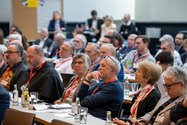 Andreas Stoch, Landes- und Fraktionsvorsitzender der SPD in Baden-Württemberg, bedankte sich ebenfalls bei allen Synodalen und Aktiven für ihre Zeit und ihre Motivation, sich in Kirche und Gesellschaft als Brückbauer*innen einzubringen. Er begrüßte auch das Schwerpunktthema der diesjährigen Synode, "Sprach- und Handlungsfähigkeit im Glauben", welches er u.a. über die Video-Aktion #glaubensstark der EKD wahrgenommen habe.