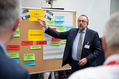 Ein besonderes Highlight war das neue Format des "Barcamp Demokratie": Die Teilnehmenden waren eingeladen, aus der Mitte der Veranstaltung eigene Diskussionsräume zu eröffnen. So entstanden spontan rund 20 offene Themenräume mit dem Ziel, neue Wege zu finden, wie Gemeinschaft, Zugehörigkeit und Mitgestaltung dazu beitragen können, Menschen und Gruppen neu zu mobilisieren und hinter gemeinsamen Zielen zu vereinen. Die daraus gewonnenen Impulse wird der Vorstand in die weitere Arbeit an der Schnittstelle von Religion und Politik einfließen lassen. Lars Castellucci, Beauftragter der SPD-Bundestagsfraktion für Kirchen und Religionsgemeinschaften, resümierte aus den vielen positiven Ideen: „Wir müssen nach vorne schauen und der Demokratie, die vielleicht einen Dämpfer erhalten hat, wieder zu neuer Kraft verhelfen.“